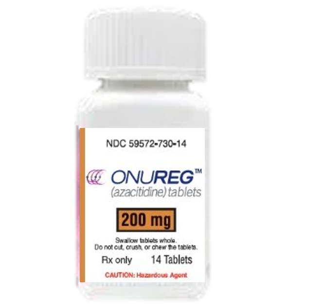 接受 ONUREG 治疗的患者中,49% 和 22% 分别出现新的或加重的 3 级或 4 级中性粒细胞减少症和血小板减少症,12% 出现发热性中性粒细胞减少症。7% 和 2% 的患者分别因中性粒细胞减少症和血小板减少症需要降低剂量,不足 1% 的患者因上述不良反应停用 ONUREG。需监测全血细胞计数并按推荐调整剂量,若出现骨髓抑制,需给予标准支持治疗(包括造血生长因子)。